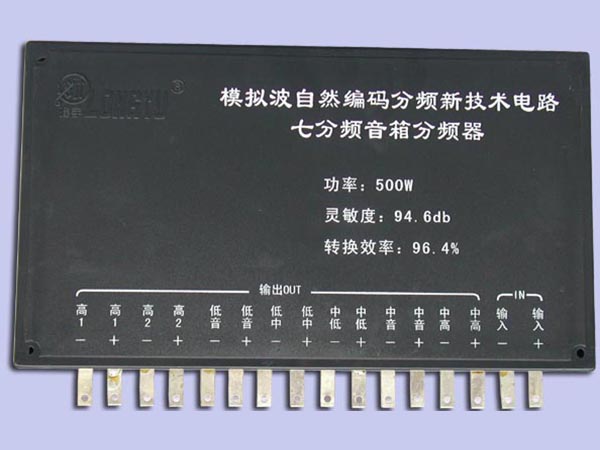 五、新议论:据我们的研究经历说明,传统电感分频器的改良已走到了极限,无论你再讲究单只单元材质工艺,以及箱体结构和外形几何尺寸的改良,或者仍沿用传统电感分频的方式进行三、四分频高、中、低每频段多喇叭并联的音柱式构造办法来增大场面气势,都也只能是换汤不换药治标不治本和失真再放大的作法而已。正因为难于突破电感线圈的"围城"效应,以至于发烧圈里无可奈何的说法是:萝卜白菜各有所爱,搞出了"百花齐放"的"声音文化",什么德国声,英国声等等。根据隆宇模拟波自然编码分频新技术的理论与实践证明:自然中发声振动波越多,那么总声源中的信息量越丰富,人耳对层次细节的辨识与感觉到的声音越多。这有如小乐队的演奏与交响乐队的演奏发出的音乐信息量,独唱与重唱、合唱的气势风格的不同是一样的道理。一件乐器,一个歌星的声音不可能把大千世界中所有美好的声音表现贻尽,同样一只扬声器或一只传统电感式单通或两、三通道分频器两、三只扬声器,是不可能将人类所能感知的丰富信息细微全面地反映出来。就如用人的能力一样,要给其予以宽松的环境才能发挥其才能。每只不同的扬声器在各自最宽松的条件下,共同演译出各自最美好的声音。 隆宇的分频新技术可以将不同数量.不同口径的扬声器,按规律组合成任意分频,理论上扬声器越多,表现的声音越真实,同样也可以将此理论引用到各种电路与线材结构中去。